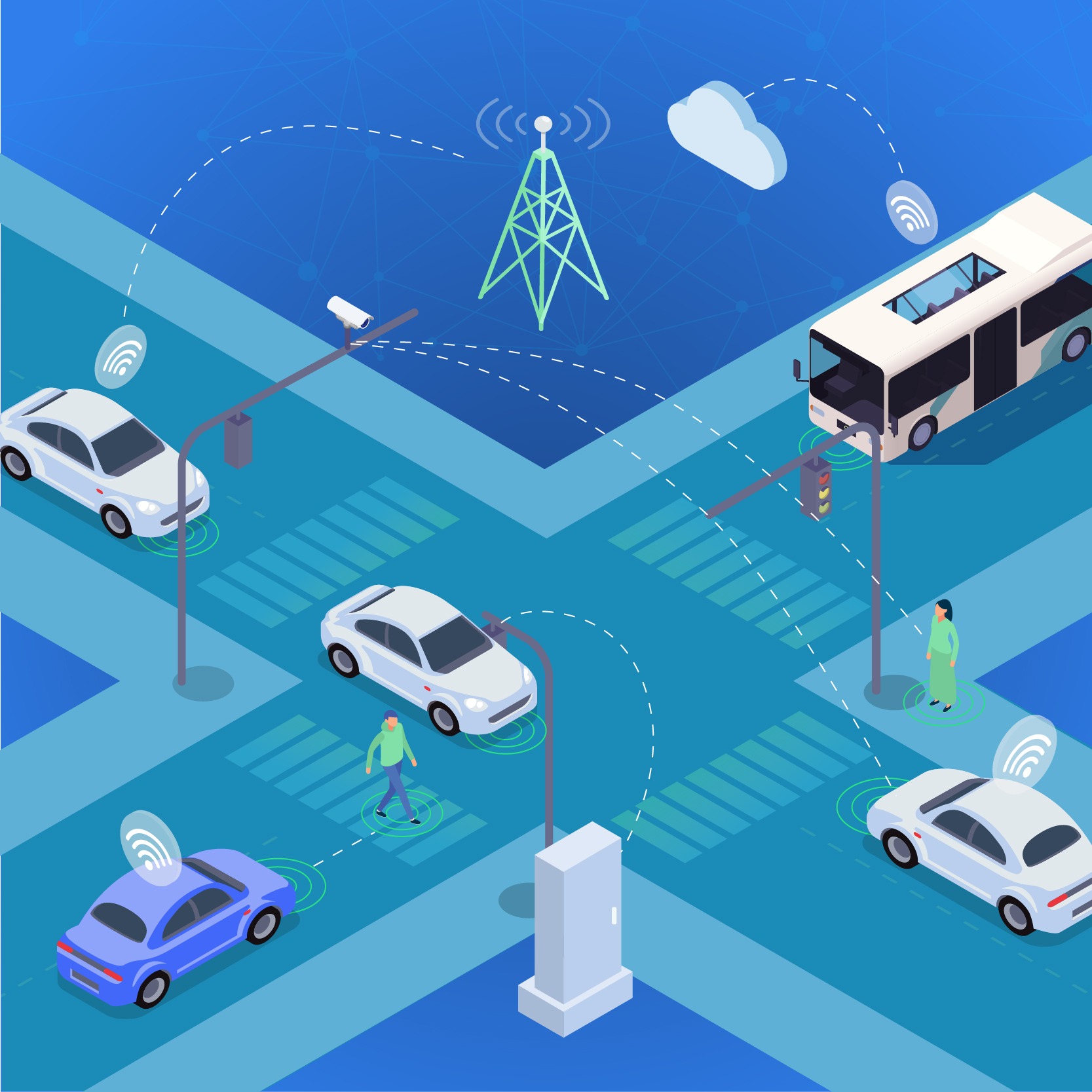 Smart traffic management system depends on the traffic signals and controllers at the intersection. These devices regulate vehicle and pedestrian movement, and when integrated, they enable corridor-wide signal coordination and adaptive, and eventually predictive timing strategies. Intelligent traffic signal integration ensures that signals can respond dynamically to changing traffic conditions, improving travel times and reducing safety risks.